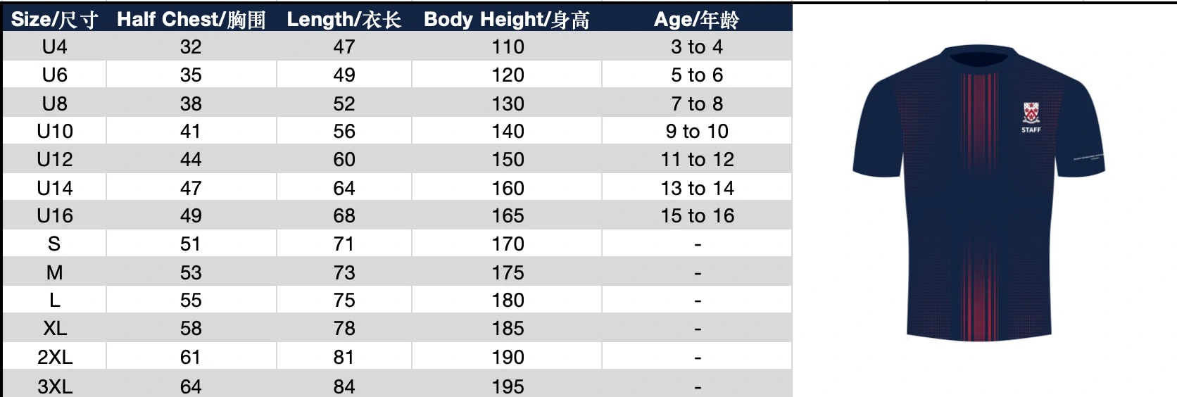 | Size | KS(U4) or KM(U6) or KL(U8) or JS(U10) or JM(U12) or JL(U14) or XS(U16) or S or M or L or XL or 2XL or 3XL |