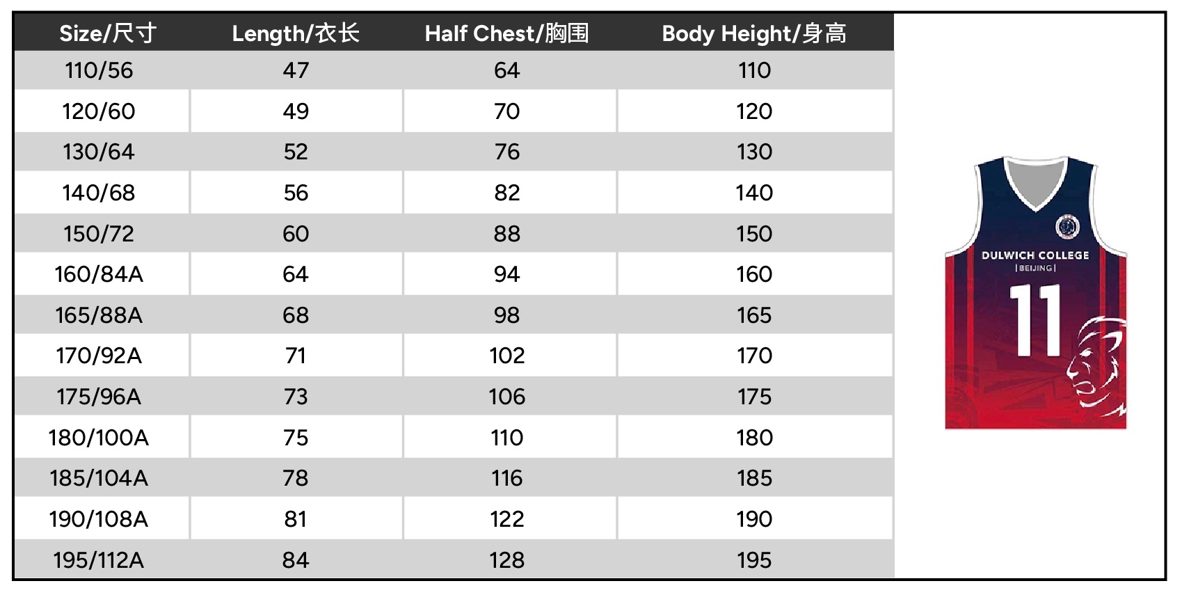 Size 110 or 120 or 130 or 140 or 150 or 160 or 165 or 170 or 175 or 180 or 185 or 190 or 195